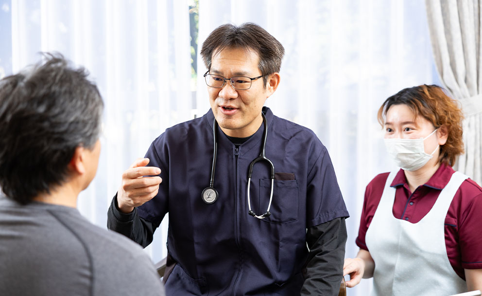当クリニックでは、地域医療の担い手として、病気を「治す」ことだけでなく、日々の生活や人生そのものに寄り添う医療を心がけています。これまで培ってきた医師としての経験を生かし、地域の皆さまが安心して相談できる、身近な存在でありたいと考えています。